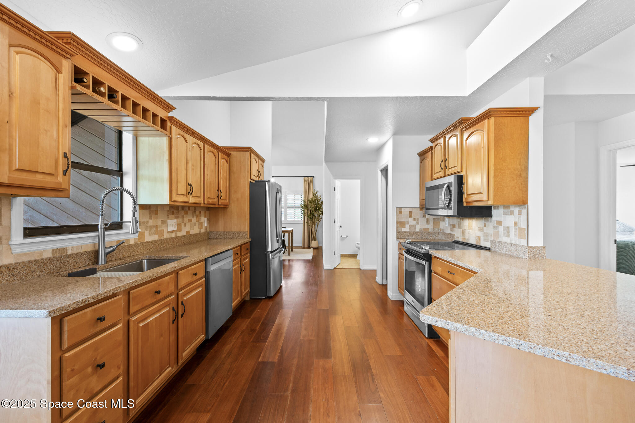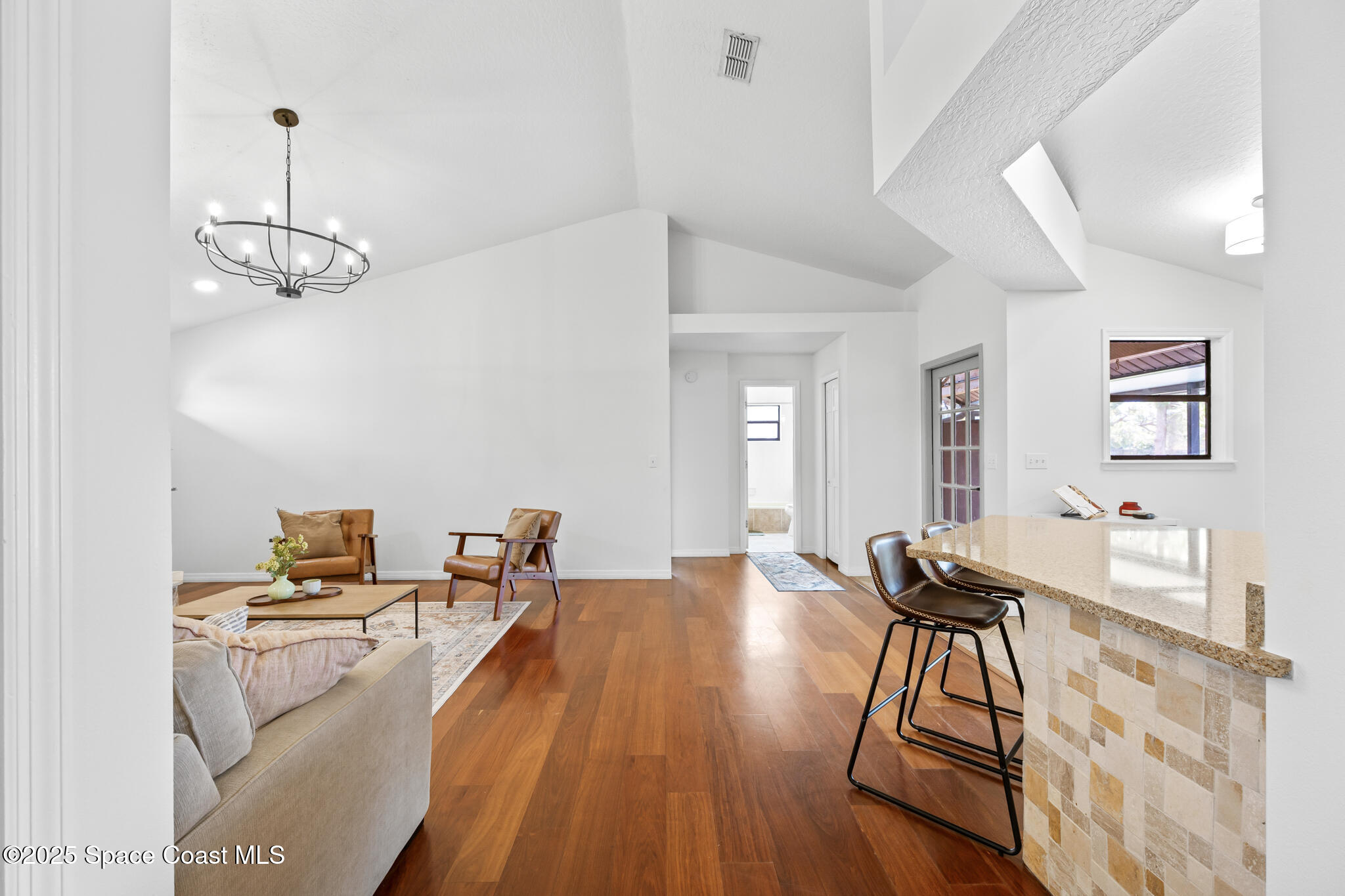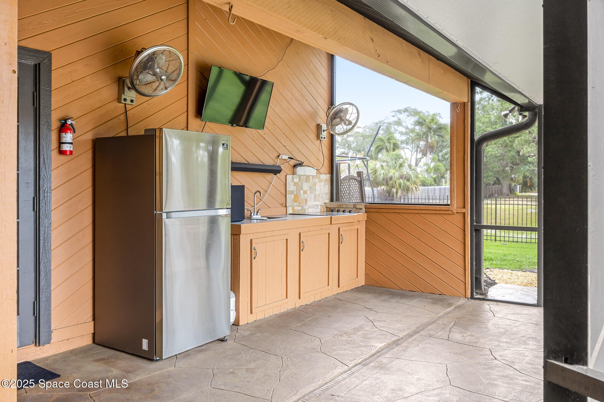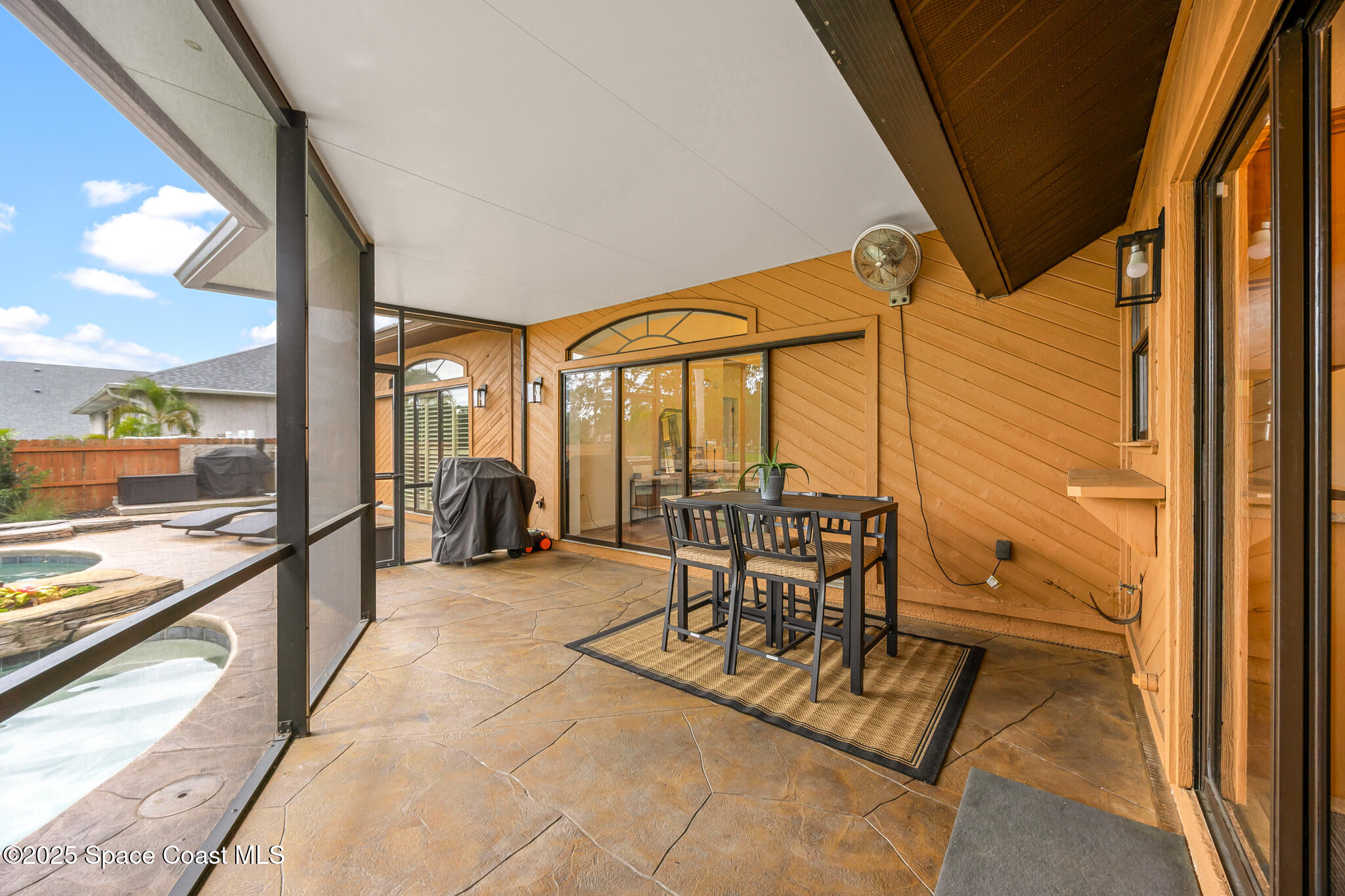 Discover this beautifully updated 3 bed, 2.5 bath home blending comfort, style & outdoor luxury. Features include a dedicated office with private entrance, a versatile loft, a screened front & back porch, outdoor kitchen & a custom pool with waterfall & grotto--perfect for entertaining. Spanning 2,776sq' of living space, the home offers a split floor plan for privacy. The primary suite provides an oversized soaking tub and large walk-in shower. The kitchen has granite countertops, ample cabinets, and generous counter space. Enjoy two living areas, a cozy wood burning fireplace & a spacious stock room connected to indoor laundry for convenience. The fenced backyard provides privacy. Recent upgrades: roof (2022) and HVAC (2020). Community boat ramp with easy access to the Indian River. Just minutes from the Space Center, beaches, and less than an hour to the magic of Disney. Don't miss this exceptional opportunity--schedule your tour today!